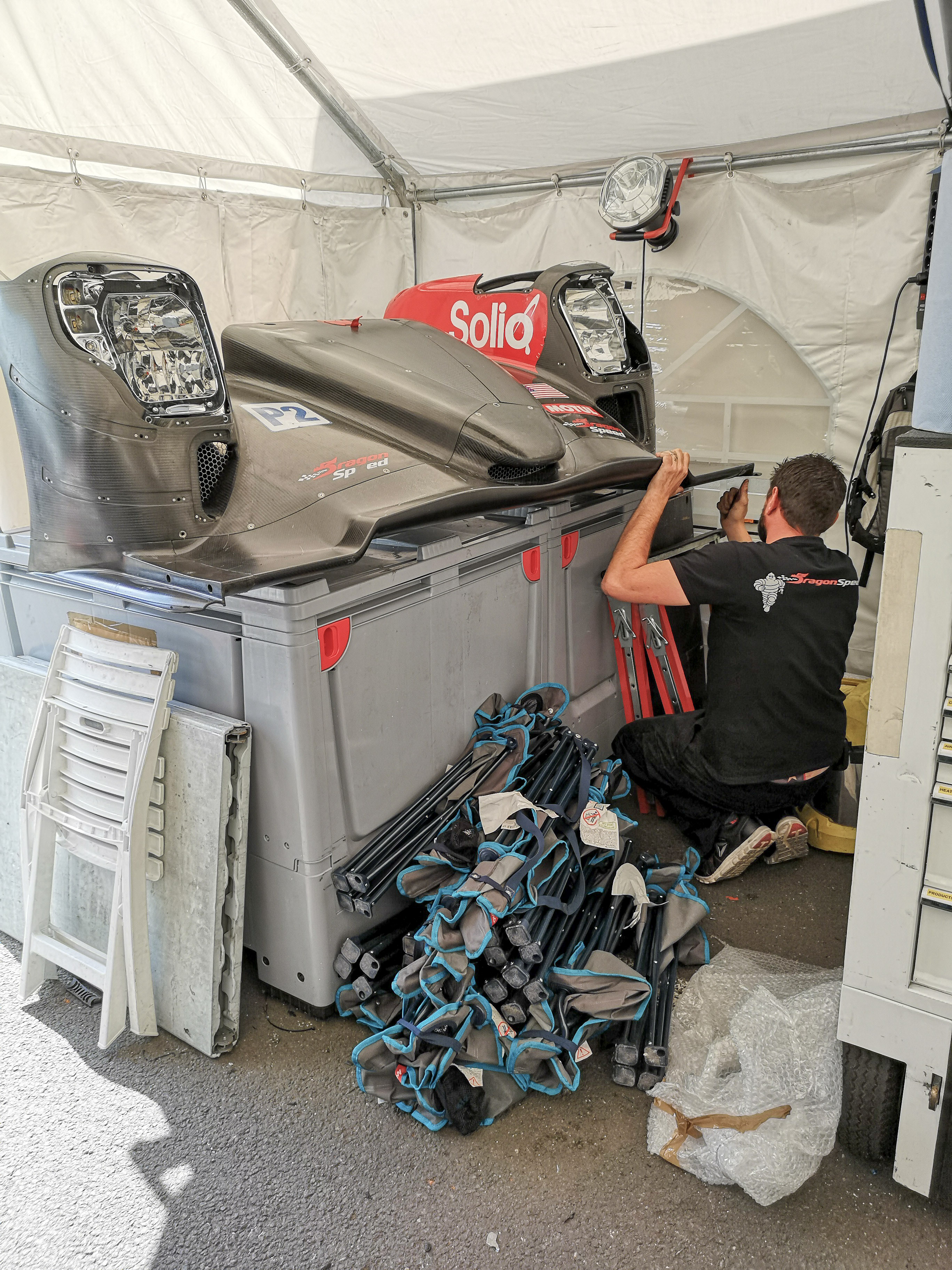 Final preparation for the big race inside the DragonSpeed oit garage.